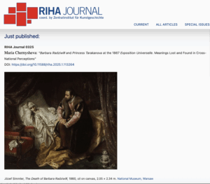 Maria Chernysheva has recently published a paper “Barbara Radziwiłł and Princess Tarakanova at the 1867 Exposition Universelle. Meanings Lost and Found in Cross-National Perceptions” in the RIHA Journal (Journal of the International Association of Research Institutes in the History of Art).